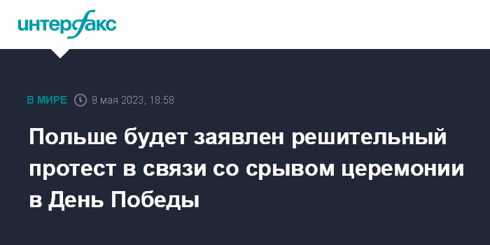 Польше будет заявлен решительный протест в связи со срывом церемонии в День Победы