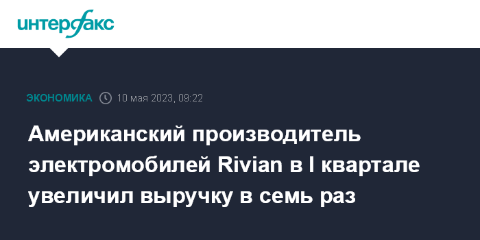 Москва. 10 мая. INTERFAX.RU - Американский производитель электромобилей Rivian Automotive Inc. сократил чистый убыток в первом квартале 2023 года на 16%, увеличив выручку в семь раз.