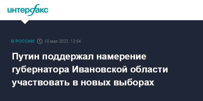 Москва. 10 мая. INTERFAX.RU - Президент РФ Владимир Путин поддержал намерение губернатора Ивановской области Станислава Воскресенского вновь пойти на предстоящие выборы главы региона.
