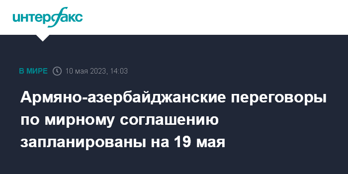 Армяно-азербайджанские переговоры по мирному соглашению запланированы на 19 мая