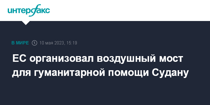 Москва. 10 мая. INTERFAX.RU - Европейская комиссия (ЕК) сообщила в среду о запуске воздушного моста для доставки в Судан критически важных грузов своим гуманитарным партнерам, работающим в обстановке острого военного конфликта в стране.