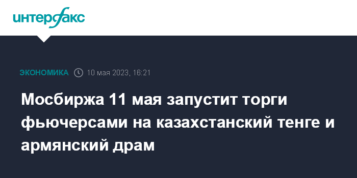Москва. 10 мая. INTERFAX.RU - Московская биржа с 11 мая начнет торги расчетными фьючерсными контрактами на валютные пары казахстанский тенге/российский рубль и армянский драм/российский рубль, говорится в сообщении биржи.