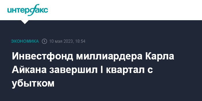 Инвестфонд миллиардера Карла Айкана завершил I квартал с убытком