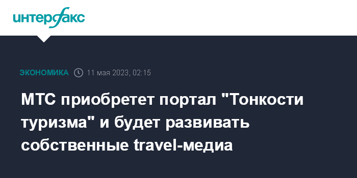 МТС приобретет портал "Тонкости туризма" и будет развивать собственные travel-медиа