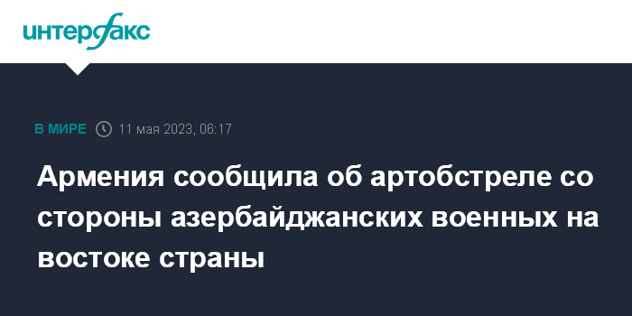 Москва. 11 мая. INTERFAX.RU - ВС Азербайджана обстреливают армянские позиции в направлении населенного пункта Сотк на востоке Армении из артиллерии и минометов, сообщает Минобороны Армении.