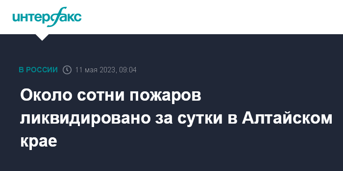 Москва. 11 мая. INTERFAX.RU - За прошедшие сутки на территории Алтайского края потушено 93 пожара, в том числе 76 возгораний травы и мусора, сообщает главное управление МЧС РФ по региону.