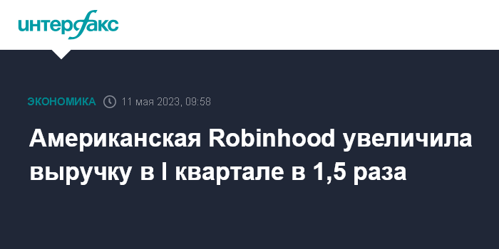Москва. 11 мая. INTERFAX.RU - Американская Robinhood Markets Inc., оператор популярной платформы для торговли на фондовом рынке, увеличила выручку в первом квартале в 1,5 раза, что оказалось лучше ожиданий аналитиков.