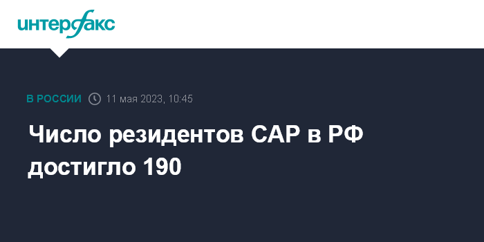 Число резидентов САР в РФ достигло 190