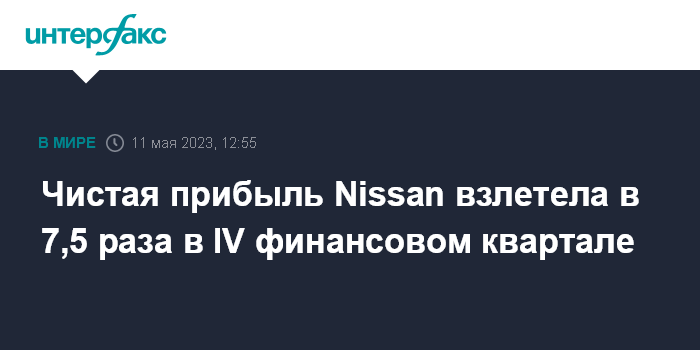 Москва. 11 мая. INTERFAX.RU - Японский автопроизводитель Nissan Motor резко увеличил чистую прибыль в четвертом квартале минувшего финансового года, причем показатель более чем в два раза превысил ожидания рынка.