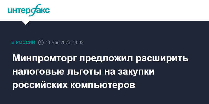 Минпромторг предложил расширить налоговые льготы на закупки российских компьютеров