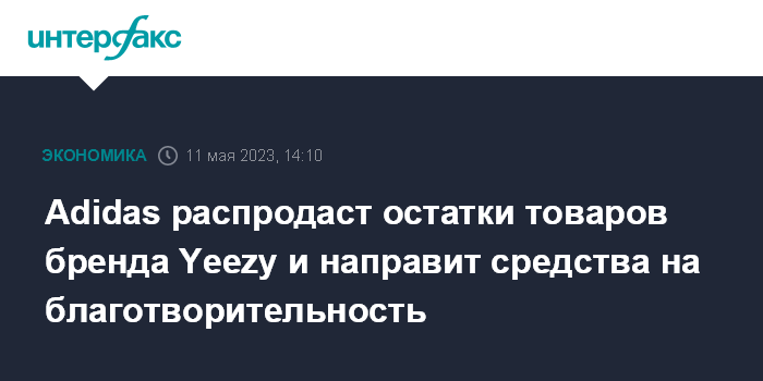 Москва. 11 мая. INTERFAX.RU - Германская adidas AG, второй по величине в мире производитель спортивных товаров, планирует распродать оставшиеся запасы кроссовок бренда Yeezy и направить полученные средства на благотворительность, сообщил акционерам компании ее главный исполнительный директор Бьорн Гульден.