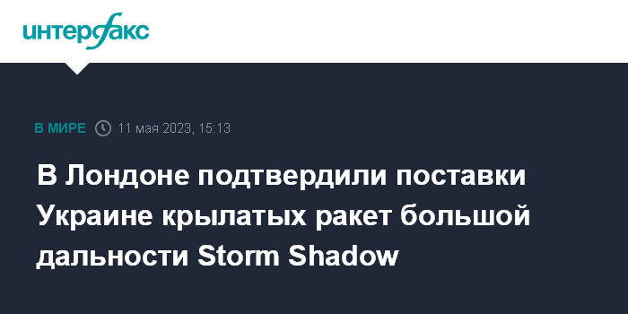 В четверг CNN со ссылкой на неназванных официальных лиц западных стран сообщал, что Британия предоставила Украине ракеты Storm Shadow. По словам одного из источников, украинская сторона заверяла Лондон в том, что не будет применять Storm Shadow для ударов по территории России.