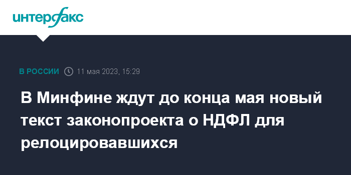 В Минфине ждут до конца мая новый текст законопроекта о НДФЛ для релоцировавшихся