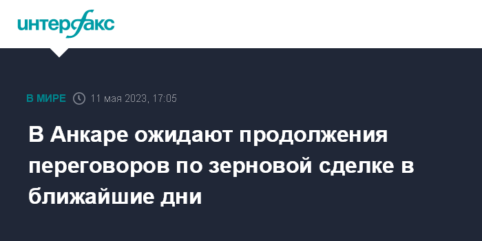 В начале мая пресс-секретарь президента РФ Дмитрий Песков заявил, что российские условия по "зерновой сделке" не выполнены до сих пор, "время сжимается", диалог по ней будет продолжен.