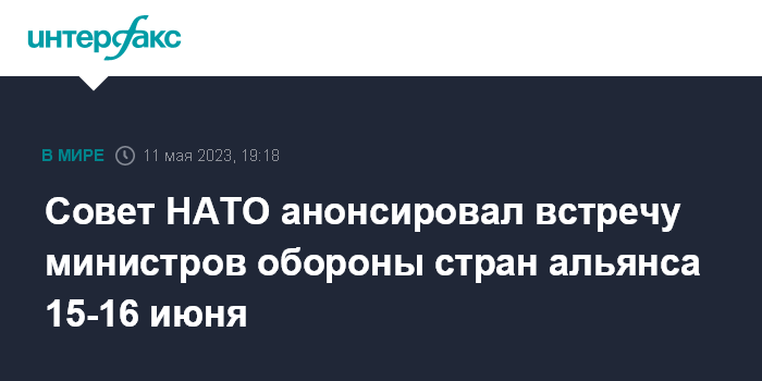 Москва. 11 мая. INTERFAX.RU - Совет НАТО на уровне министров обороны соберется 15-16 июня в Брюсселе, сообщила в четверг пресс-служба Североатлантического альянса.