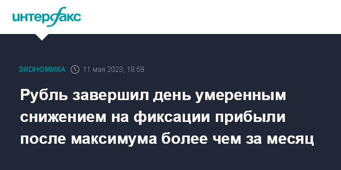 Рубль завершил день умеренным снижением на фиксации прибыли после максимума более чем за месяц