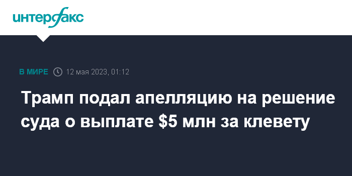 Трамп подал апелляцию на решение суда о выплате $5 млн за клевету