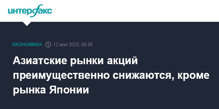 Москва. 12 мая. INTERFAX.RU - Фондовые индексы Азиатско-Тихоокеанского региона преимущественно опускаются в ходе торгов в пятницу на опасениях по поводу проблем в американском банковском секторе и ослабления внутреннего спроса в Китае.