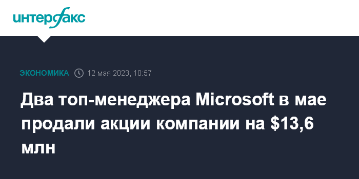 Два топ-менеджера Microsoft в мае продали акции компании на $13,6 млн