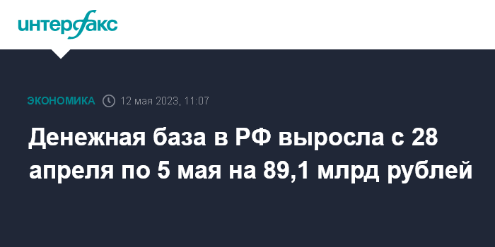 Денежная база в РФ выросла с 28 апреля по 5 мая на 89,1 млрд рублей