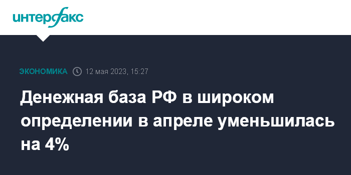 Денежная база РФ в широком определении в апреле уменьшилась на 4%