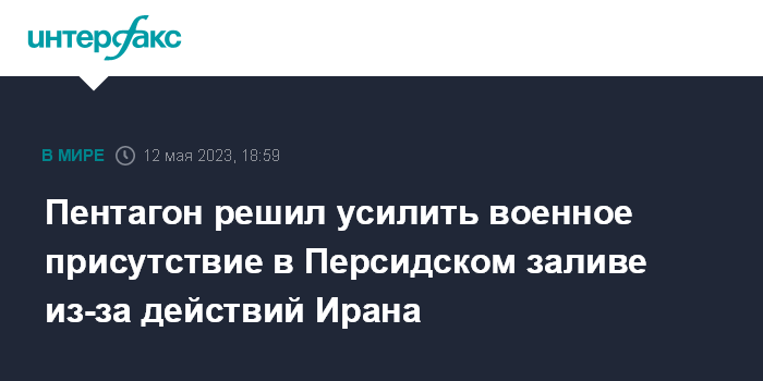 Москва. 12 мая. INTERFAX.RU - Пентагон позже в пятницу объявит о ряде шагов, направленных на наращивание военного присутствия США в регионе Персидского залива. Об этом сообщил представитель Совета национальной безопасности США Джон Кирби.