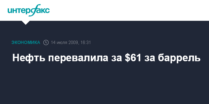 Москва. 14 июля. INTERFAX.RU - Черное золото продолжает дорожать и уже превысило отметку в $61 за баррель. Цена августовских фьючерсных контрактов на нефть марки WTI в ходе электронных торгов Нью-йоркской товарной биржи (NYMEX) во вторник достигала $61,32 за баррель (+2,7%). По состоянию на 16:10 мск цена августовского контракта составила $61,24, прибавив $1,55 (+2,6%). В понедельник эти контракты подешевели до $59,69 за баррель - минимального уровня с 19 мая.