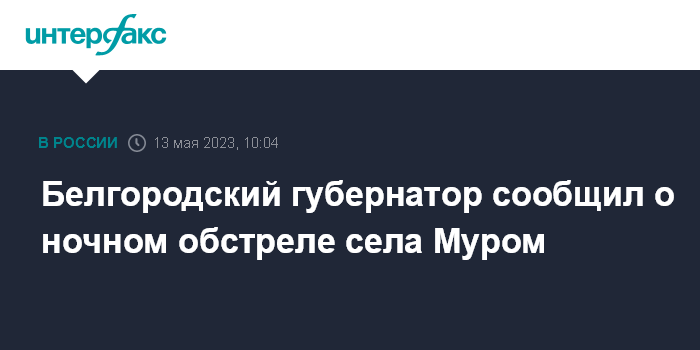 Москва. 13 мая. INTERFAX.RU - Село Муром в Белгородской области в очередной раз подверглось обстрелу со стороны Украины, сообщил в субботу глава региона Вячеслав Гладков.