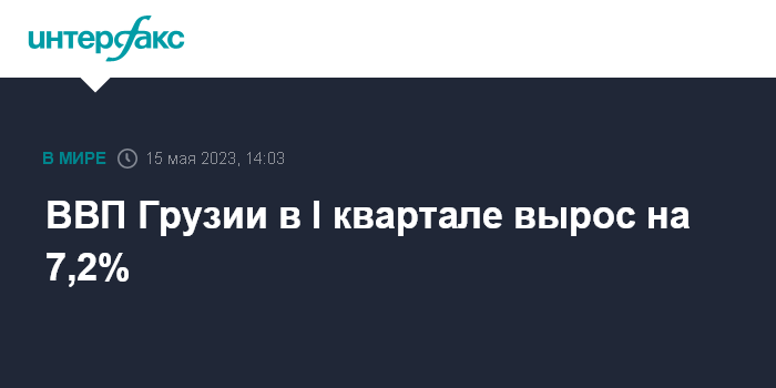 Москва. 15 мая. INTERFAX.RU - Экономический рост в Грузии в первом квартале 2023 года составил 7,2%, сообщила Национальная служба статистики (Грузстат).