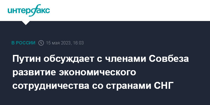 Москва. 15 мая. INTERFAX.RU - Президент Владимир Путин обсуждает с постоянными членами Совета безопасности России дополнительные меры для развития различных направлений совместной с государствами СНГ хозяйственной деятельности.