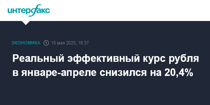 В январе-апреле 2023 года реальный эффективный курс рубля снизился на 20,4%.