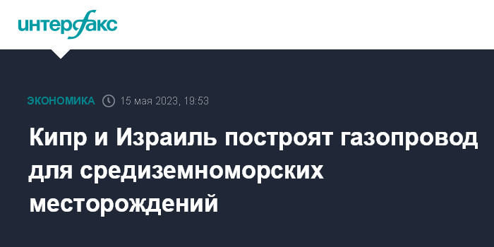 Москва. 15 мая. INTERFAX.RU - Кипр и Израиль обсуждают соглашением по строительству газопровода, по которому на остров будет поступать газ с израильских и кипрских месторождений, сообщает АР.
