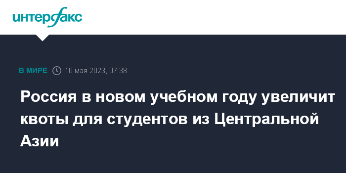 Москва. 16 мая. INTERFAX.RU - Россия в 2023-2024 учебном году увеличит число квот для студентов из стран Центральной Азии, заявил замминистра МИД РФ Михаил Галузин в ходе третьей Центральноазиатской конференции Международного дискуссионного клуба "Валдай", которая проходит в Томском госуниверситете (ТГУ).
