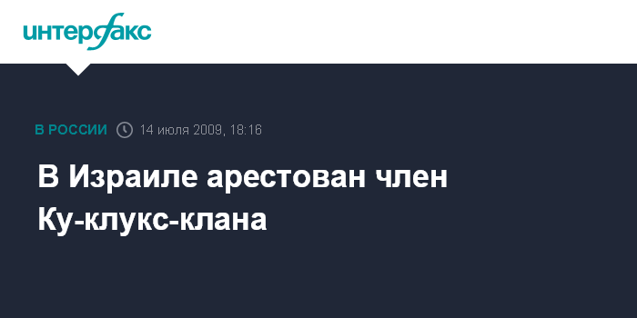 Иерусалим. 14 июля. INTERFAX.RU - Один из ведущих активистов Ку-клукс-клана, а также один из ста наиболее разыскиваемых американскими властями преступников был арестован в ночь на вторник в Тель-Авиве, сообщает во вторник газета Jerusalem Post.