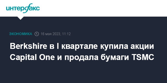 Berkshire в I квартале купила акции Capital One и продала бумаги TSMC