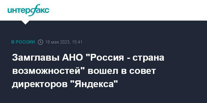 Замглавы АНО "Россия - страна возможностей" вошел в совет директоров "Яндекса"