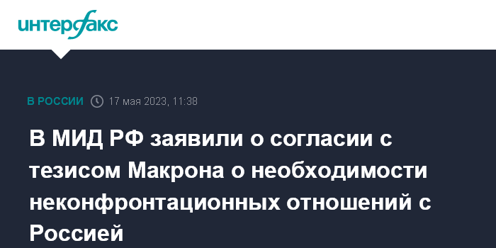 В МИД РФ заявили о согласии с тезисом Макрона о необходимости неконфронтационных отношений с Россией