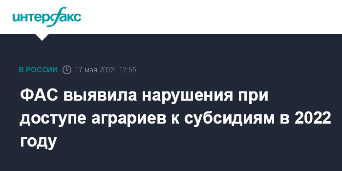 ФАС выявила нарушения при доступе аграриев к субсидиям в 2022 году