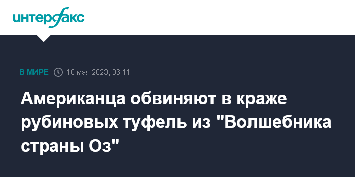 Американца обвиняют в краже рубиновых туфель из "Волшебника страны Оз"