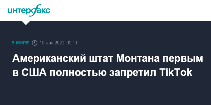 Москва. 18 мая. INTERFAX.RU - Губернатор Монтаны Грег Джанфорте подписал закон о запрете TikTok в штате в среду.