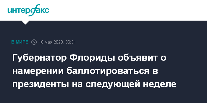 Ранее сообщалось, что Десантис планировал заявить о намерении побороться за пост президента в конце мая в преддверии Дня поминовения (29 мая).