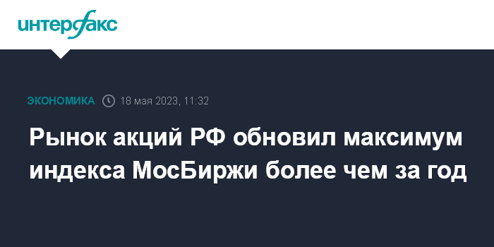 Рынок акций РФ обновил максимум индекса МосБиржи более чем за год