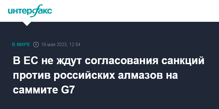 Москва. 18 мая. INTERFAX.RU - В Евросоюзе полагают, что ограничения в отношении российских алмазов вряд ли удастся согласовать на саммите G7 в Японии, пишет Le Figaro.