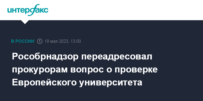 Москва. 18 мая. INTERFAX.RU - Рособрнадзор опровергает информацию о проверке в Европейском университете Петербурга, сообщили "Интерфаксу" в пресс-службе ведомства.