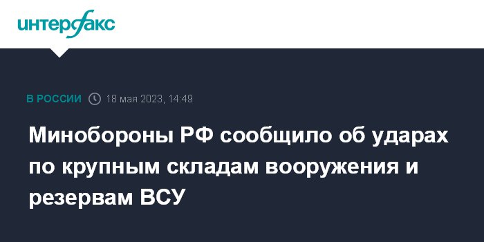 Москва. 18 мая. INTERFAX.RU - В течение ночи российские военные нанесли успешные удары высокоточным оружием большой дальности морского и воздушного базирования по резервам вооруженных сил Украины и складам с техникой, сообщил официальный представитель Минобороны РФ Игорь Конашенков на брифинге в четверг.