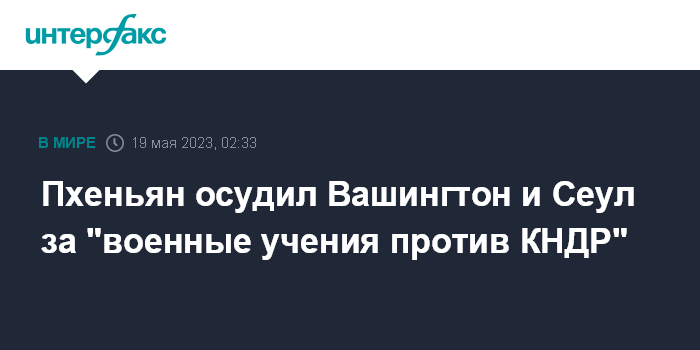 Москва. 19 мая. INTERFAX.RU - КНДР в пятницу в очередной раз осудила Южную Корею и США за намерение на следующей неделе провести крупные совместные военные учения с боевой стрельбой.