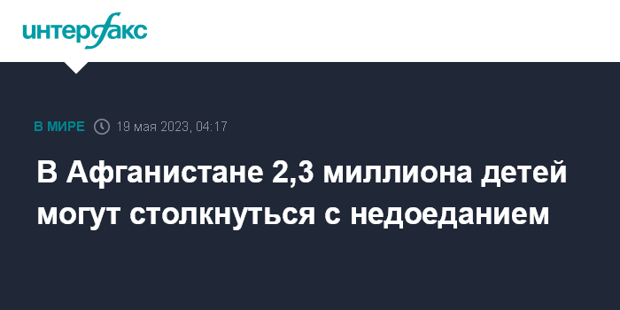 По его словам, в 2023 году 2,3 миллиона детей могут столкнуться с недоеданием, при этом 175 тыс. из них нуждаются в лечении от связанных с нехваткой еды опасных для жизни состояний.