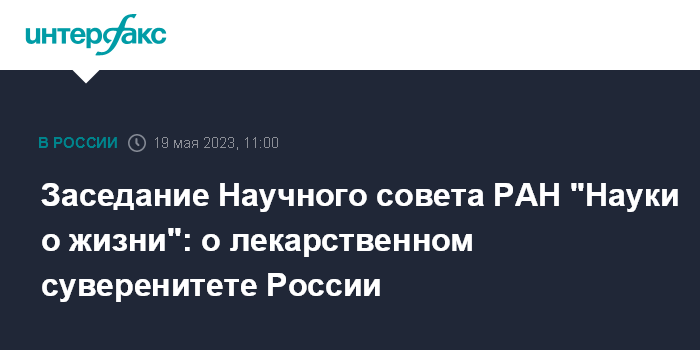 Москва. 19 мая. INTERFAX.RU - Очередное заседание Научного совета РАН "Науки о жизни" было посвящено основам лекарственного суверенитета России. Сообщает наш специальный корреспондент Вячеслав Терехов.
