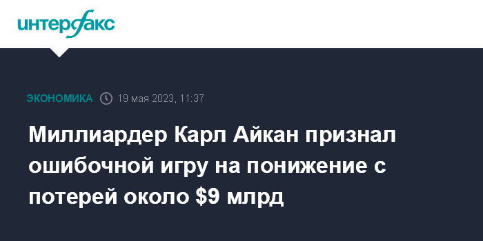 Миллиардер Карл Айкан признал ошибочной игру на понижение с потерей около $9 млрд