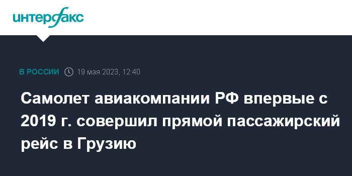 Самолет авиакомпании РФ впервые с 2019 г. совершил прямой пассажирский рейс в Грузию